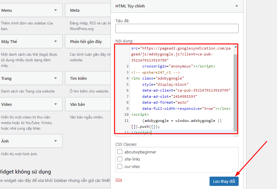 Đây là cách truyền thống và thường được nhiều người áp dụng khi mới bắt đầu. Sau khi lấy mã quảng cáo từ Google AdSense, bạn có thể vào phần chỉnh sửa theme trong WordPress, tìm đến file header.php, footer.php hoặc khu vực widget, rồi chèn code quảng cáo vào. Cách này giúp bạn kiểm soát hoàn toàn vị trí hiển thị, đồng thời giảm phụ thuộc vào plugin.