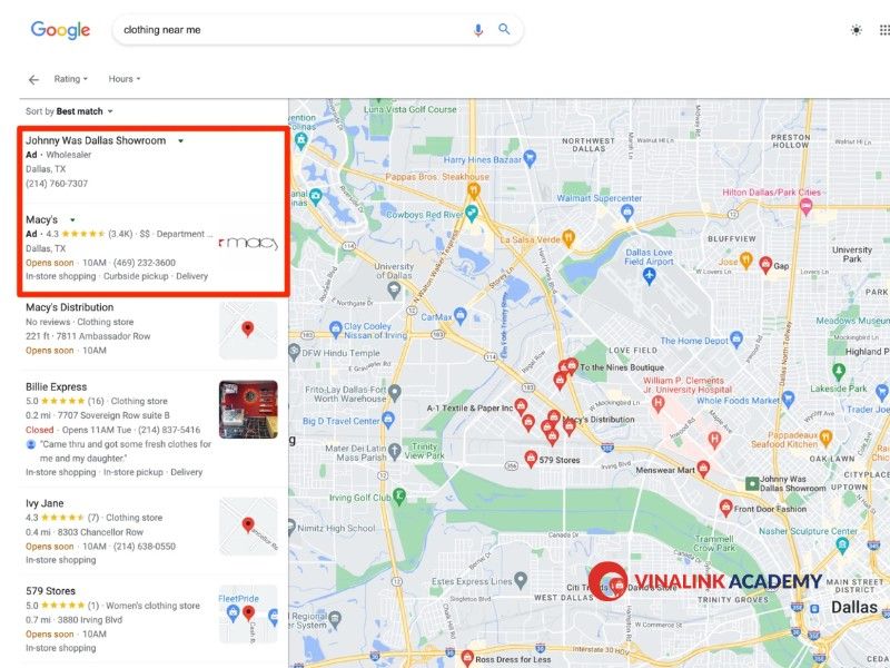 Quảng cáo tìm kiếm địa phương thường được nhiều doanh nghiệp nhỏ và cửa hàng dịch vụ sử dụng vì nó cho phép họ tiếp cận khách hàng ngay tại khu vực hoạt động. Khi ai đó tìm kiếm trên Google những từ khóa gắn với vị trí như “quán cà phê gần đây”, “dịch vụ sửa xe ở quận 1”, thì quảng cáo sẽ hiển thị ngay trên trang kết quả, kèm bản đồ, số điện thoại và thông tin chi tiết.
