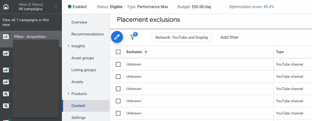 Google Ads Placement Exclusion List
