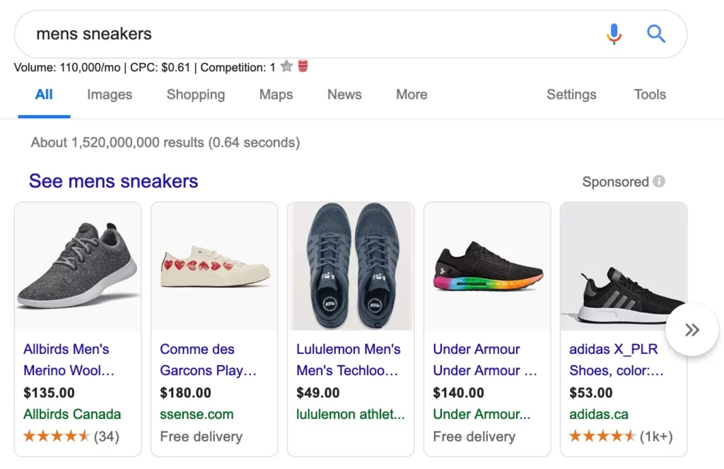 Search Ads are a type of ad that appears directly on Google’s search results page when users type in keywords related to products or services. This is considered an effective way to reach customers with clear intent and a high readiness to buy. For example, when someone searches for “buy genuine men’s sports shoes,” an ad from your store can appear right at the top of the page. A key advantage of Search Ads is their ability to target precisely by keywords, geographical location, age, or even search behavior. This not only helps increase conversion rates but also optimizes costs, since you only pay when a customer clicks on your ad.